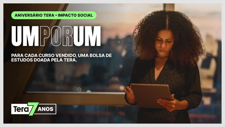 Em agosto, cada inscrição na Tera transforma duas carreiras: a de quem compra e a de quem recebe uma bolsa integral de mesmo valor doada pela Tera.